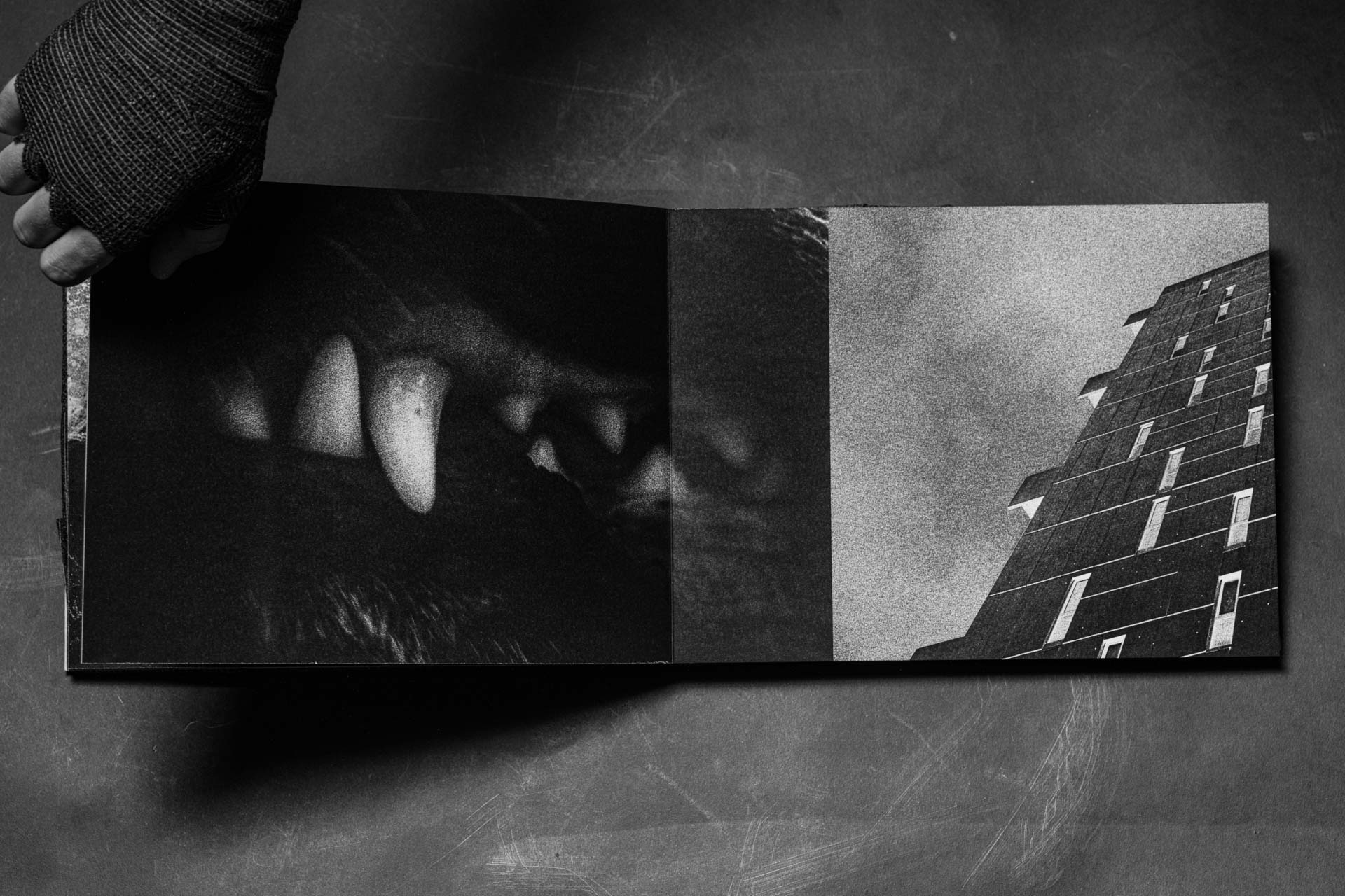 “biest” is a photographic project about architectural power, masculinity, combat and feelings. The work is presented as a 60-page photobook (21×28 cm) encased in a 20 kg concrete slipcase (26x33x13 cm). The book itself is bandaged, it must be unwrapped and freed before it can be opened. This act becomes part of the work’s physical and symbolic experience. In the photographs, brutalist buildings appear not merely as urban structures but as physical opponents — embodiments of masculinity shaped by hardness, control, and confrontation. They stand as symbols of both internal and external battles against societal expectations and itself. The beast takes shape where one denies oneself.